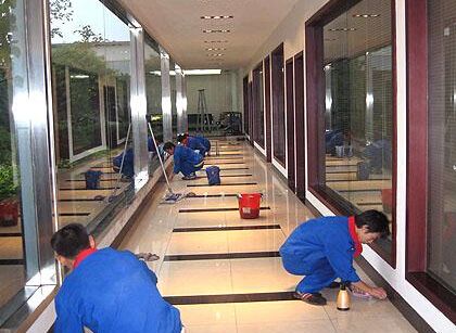 大樓室外清掃、垃圾清運、花草養護,包括辦公大樓各樓層走廊、地板、過道、梯步、地墊、地腳磁磚線、電燈開關盒、辦公室外部門面及門框、玻璃窗、玻璃門、天花板蜘蛛網清潔;電梯及地墊的清潔、更換;防護欄及扶手、廣告牌、標識牌、過道兩旁的機械設備表面清潔;廁所便盆尿盆污垢、廁所水龍頭及門和地板清潔;過道兩旁垃圾桶內垃圾傾倒及痰盂的清洗;過道內物品擺放整潔、美觀。